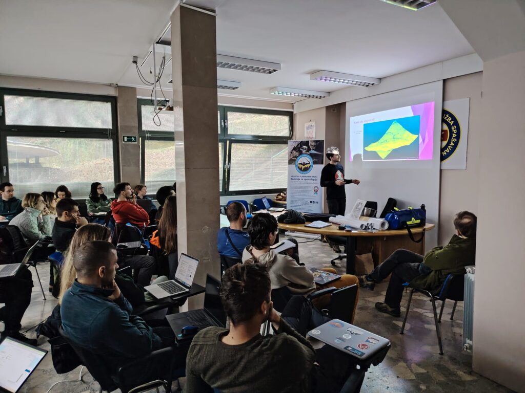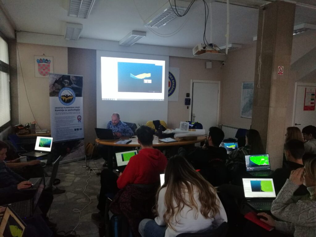 Na seminaru smo učili kako izraditi kartu iz LiDAR podataka koristeći CloudCompare i QGIS. Jurica je na početku održao teorijski dio i ispričao pozadinu nastanka svoje prve karte, nakon čega je uslijedio zabavniji dio – radionica. Svatko je radio svoju kartu koju smo kasnije ubacili u OruxMaps. Nakon pauze i finog graha s kobasicama, koji su za nas skuhali članovi SO PDS Velebit, uslijedio je dio o rekognosciranju terena pomoću LiDAR podataka. Tu je svoju stručnost pokazao naš Piero, koji je objasnio kako LiDAR funkcionira, koji su nam podaci potrebni i kako do njih doći. Na kraju nam je pokazao kako mi, nadobudni špiljari, možemo koristit CloudCompare za pronalaženje što više graba.
